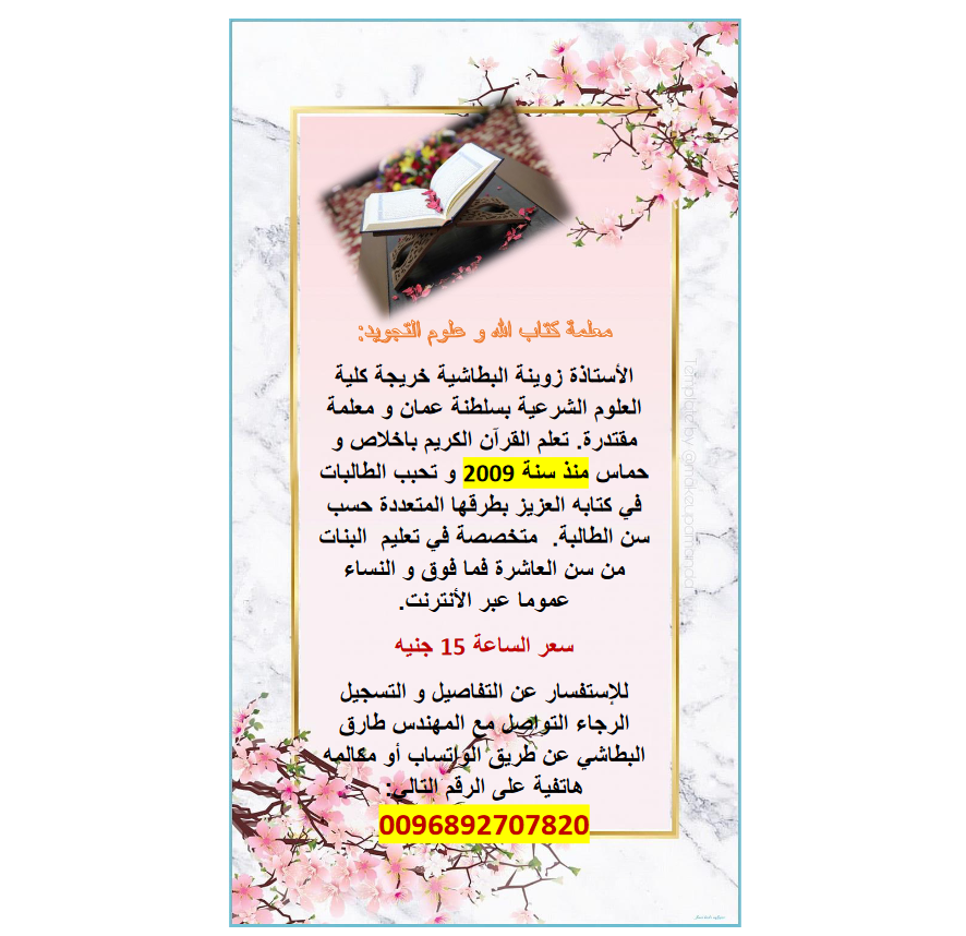 Al-Fajr has been approached by an external teacher who is offering Quran lessons for women and girls aged 10 and above, via the Internet.